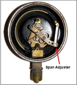 - Setelah kondisi jarum pada tekanan nol dan pada tekanan range atas sesuai dengan besarnya tekanan kalibrator , langkah berikutnya adalah memeriksa linearitas, caranya yaitu dengan menaikkan tekanan kalibrator per 25% lalu membandingkannya dengan posisi jarum pressure gauge jika sudah sesuai maka langkah kalibrasi selesai, jika ada penyimpangan atau penunjukkan pressure gauge tidak linear misalnya pada saat tekanan kalibrator 12,5 Bar lalu pressure gauge menunjuk angka 13,5 berarti telah terjadi penurunan kualitas bagian dalam pressure gauge seperti bourdon fleksibilitasnya sudah tidak merata, untuk kasus seperti ini maka pressure gauge sudah tidak layak pakai lagi.