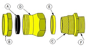 • Type B. Untuk kabel kepang lapis baja atau kawat, di mana fungsi gland kabel ini adalah untuk mempertahankan armor atau logam kepang dan untuk memberikan kontinuitas listrik antara baja atau kepang dan gland kabel..