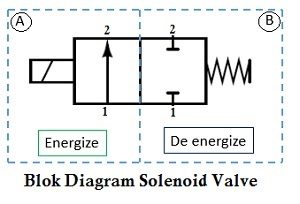 Perhatikan gambar dibawah ini gambar blok diagram untuk solenoid type 2 way Normaly Close beserta penjelasannya