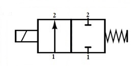Blok diagram menunjukkan bahwa solenoid ini mempunyai 2 port yaitu port 1 dan port 2. Port 1 adalah inlet dan port 2 adalah outlet. Sisi B yang ditandai dengan simbol pegas adalah kondisi solenoid pada saat tidak terhubung ke sumber listrik atau pada saat De Energize, sedangkan sisi A adalah simbol yang menunjukkan kondisi solenoid pada saat koil terhubung ke sumber listrik atau saat Energize.