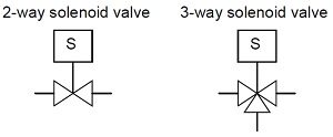 Pada P&ID (Process and Instrument Diagram) symbol 3-way solenoid valve adalah seperti gambar dibawah ini