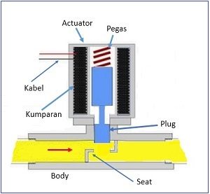 Solenoid valve adalah perangkat instrumentasi yang berfungsi sebagaimana halnya keran yang dapat membuka dan menutup aliran. Adapun yang special dari solenoid valve yaitu bagian penggeraknya bukan handel mekanis melainkan berupa kumparan listrik atau koil elektrik yang akan bekerja pada saat dialiri arus listrik. Oleh karena itu berkaitan dengan solenoid valve ada istilah Energize dan Deenergize, Energize yaitu kondisi ketika solenoid dialiri arus listrik dan Deenergize adalah kondisi ketika solenoid tidak mendapatkan arus listrik. Prinsif kerja solenoid dapat diterangkan sebagai berikut; pada bagian body solenoid terdapat plug dan seat yaitu komponen yang berfungsi untuk membiarkan aliran lewat atau sebaliknya, sedangkan pada bagian actuator terdapat kumparan listrik yang akan berubah menjadi magnet ketika dialiri arus listrik, untuk selanjutnya magnet akan menarik plug.